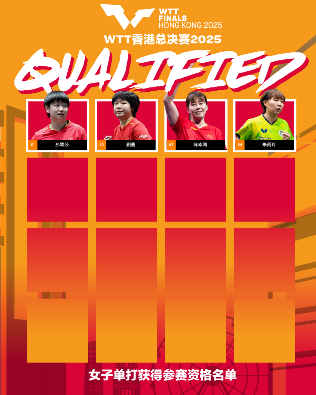 温泉2025年的香港总决赛将于12月10日至14日在香港洪斯体育场举行。随着赛季决赛,智慧香港决赛2025将由WTT决赛决赛确定。男子和女子阵容由WTT决赛排名中的前16名球员组成。混合双打的8对组合由WTT总决赛排名前7位组合以及两对主机的通配符组合组成。在WTT欧洲大满贯瑞典2025年结束时,还成立了第一批获得WTT香港决赛2025年的球员。女子单打:Sun Yingsha,Kuai Man,Chen Xingtong,Zhu Yuling Men's单打:Lin Shidong,Wang Chuqin,Zhang Benzhihe,Morefgald混合双打:Lin Shidong/Kuai Man,Lin Zhongxun/lin yubin yubin/deng Minlu: